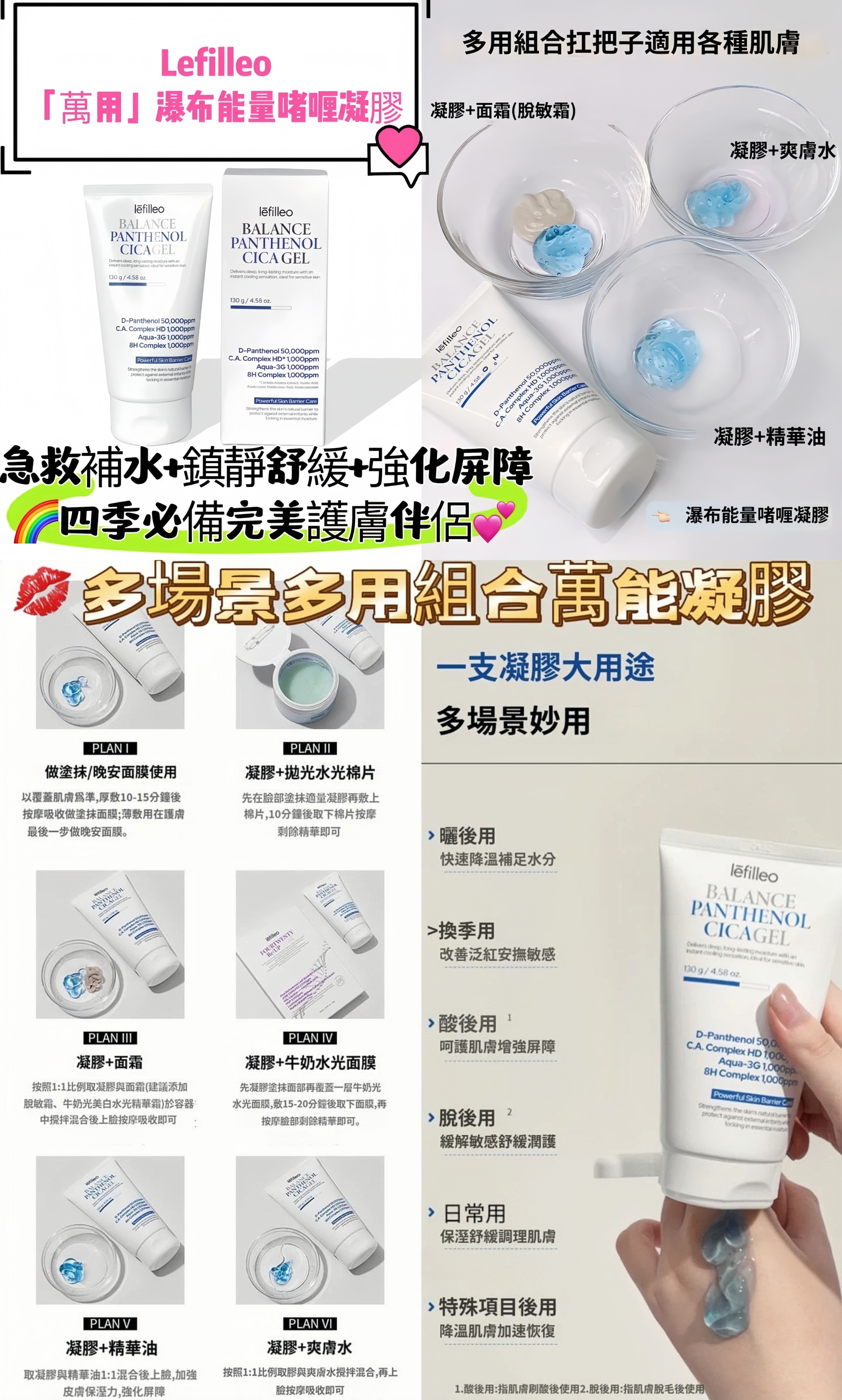 別怕!快讓這罐擁有「瀑布級」補水力的 Lefilleo Balance Panthenol Cica Gel 來拯救你!💧
