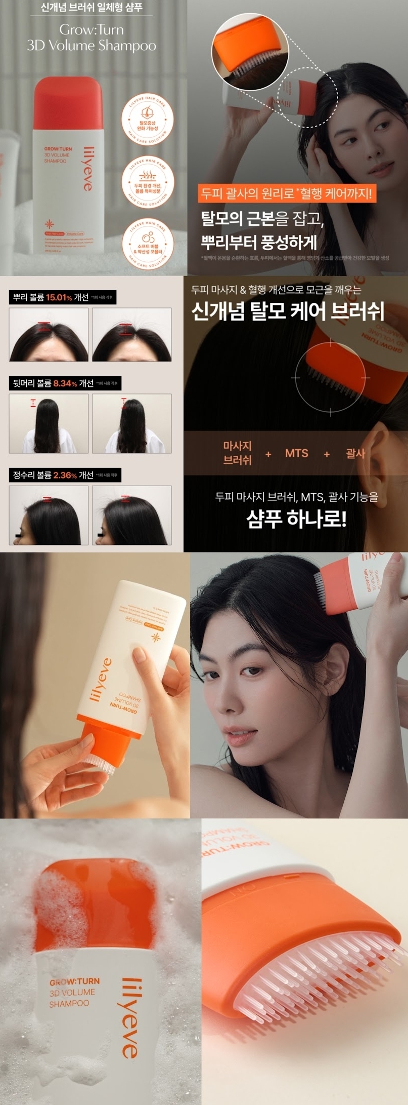 內置按摩刷設計😍,新概念脫髮護理刷,一次結合按摩頭皮洗髮水,用直接刺激頭皮的刷子一次清潔➕️按摩➕️營養供應,深層激活頭皮, 從改善血行的脫髮護理到頭髮體積,洗髮露是一種溫和而強大的潔淨,頭皮強化&脫髮預防專利成分,有助於減少脫髮症狀,同時促進乾淨的頭皮和柔軟、豐滿的3D頭髮,洗後即見根部豐盈提升15.01%,就像SPA護理一樣!