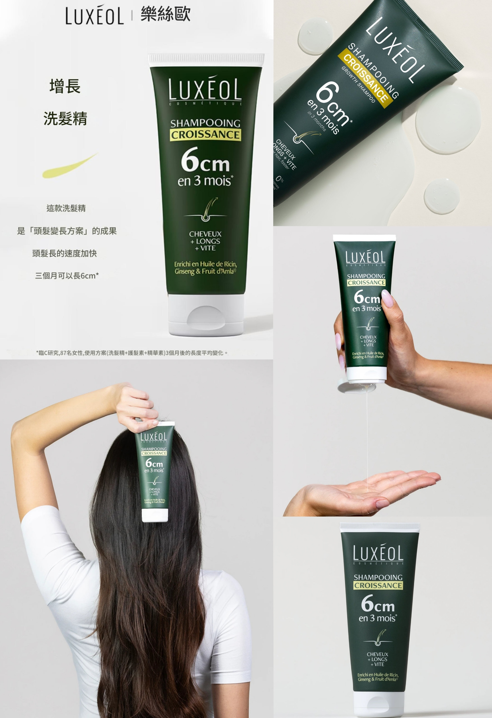 ●經臨床實證能有效促進頭髮生長,助您在短短三個月內,實現髮長增加六公分的目標。