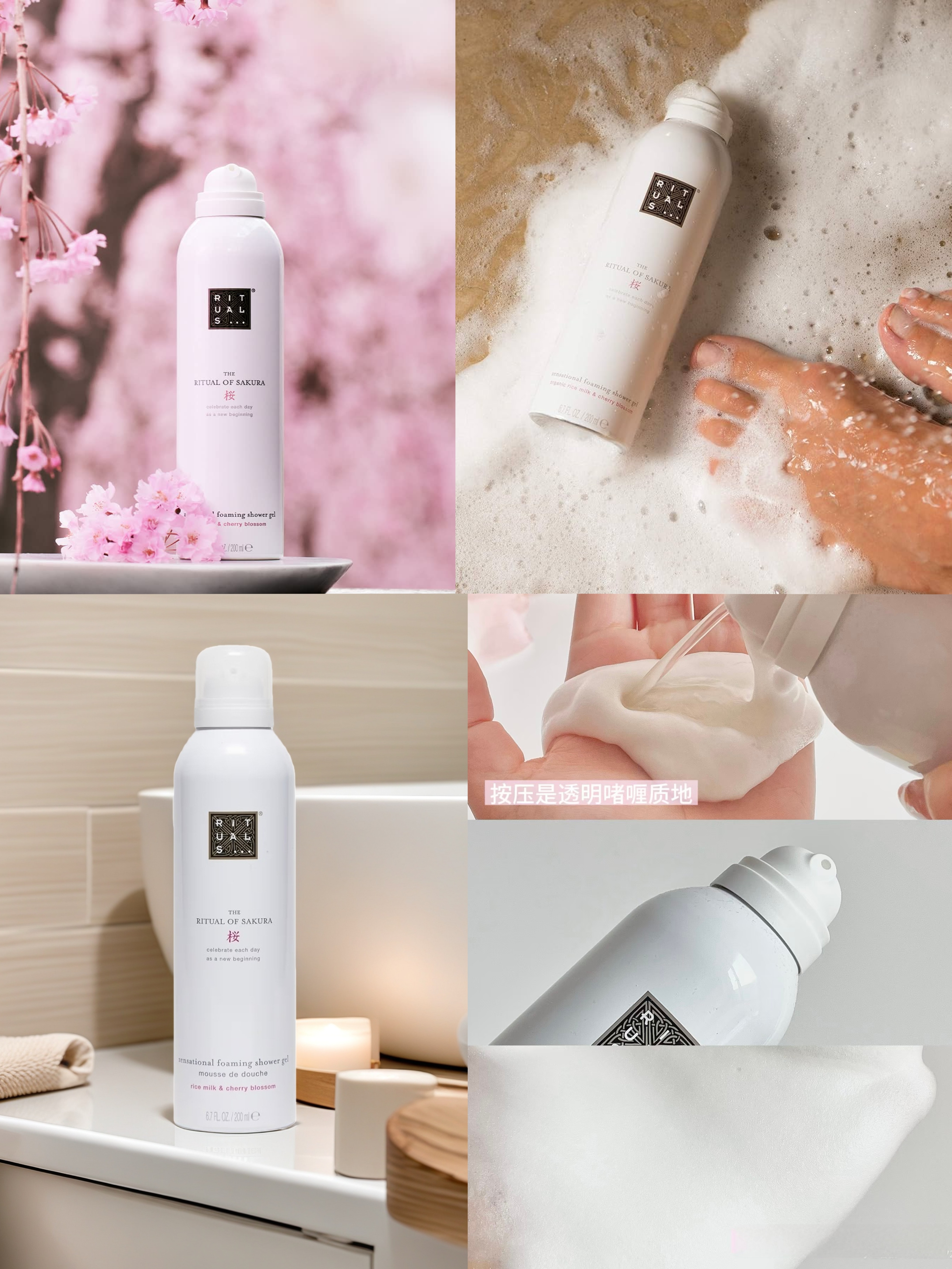 The Ritual of Sakura慕斯泡沫沐浴露令您每天感覺煥然一新,身心重新出發。糅合櫻花和滋潤米奶的雅致清香,為感官和肌膚獻上愉悅享受,讓您盡享日本櫻花的護膚功效和迷人香氣。